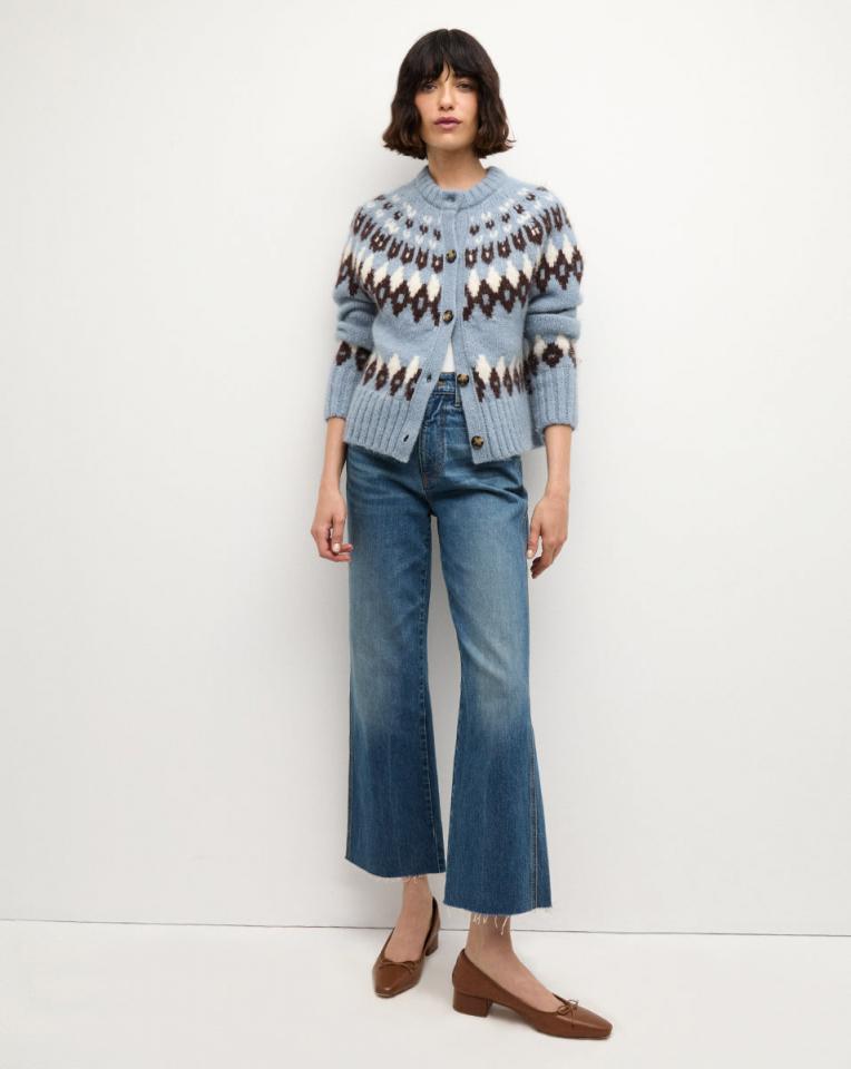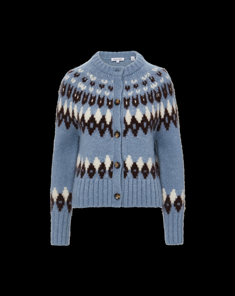 No wardrobe is complete without a great Fair Isle knit. Spun from an Italian alpaca and merino wool blend—with stretch for ease—the Christina cardigan features a boxy fit, tortoiseshell buttons, and ribbing at the cuffs, neck and hem. Pair with jeans for ease or a maxi skirt for polish.68% Alpaca, 22% Polyamide, 10% Merino WoolFabric country of origin: ItalyDry clean onlyStyle #2409KA3190448