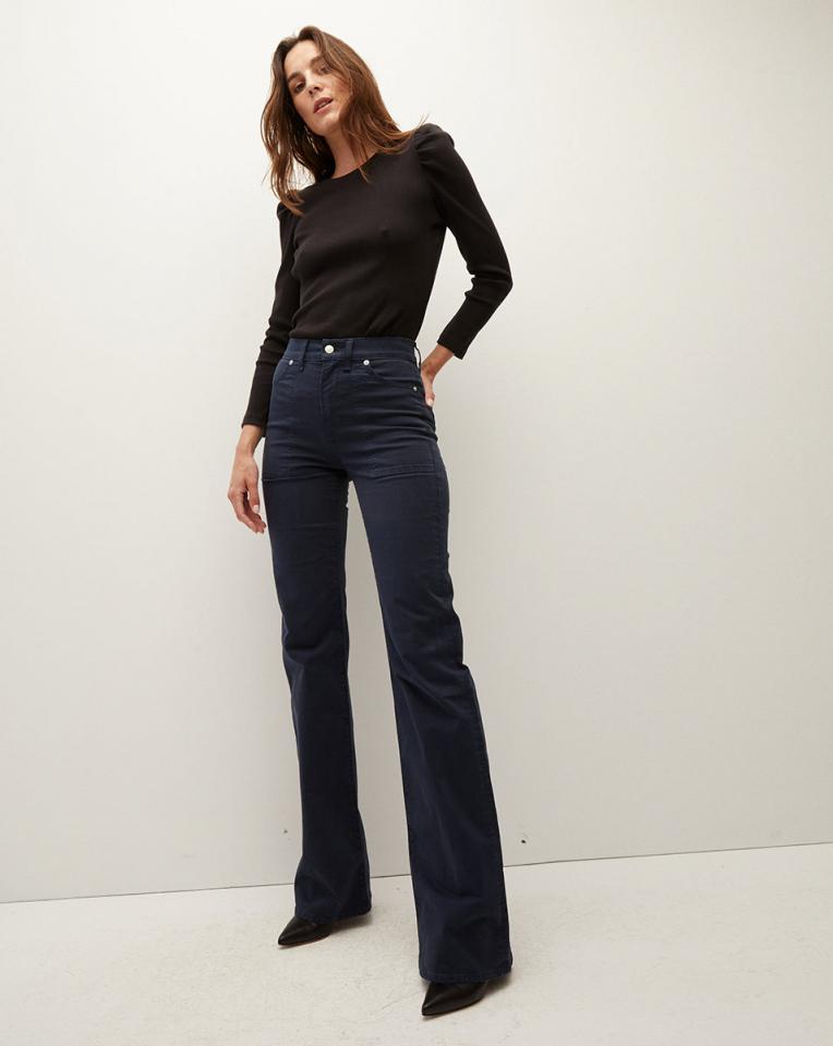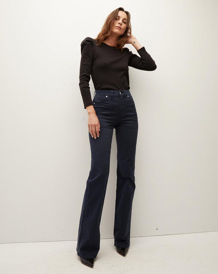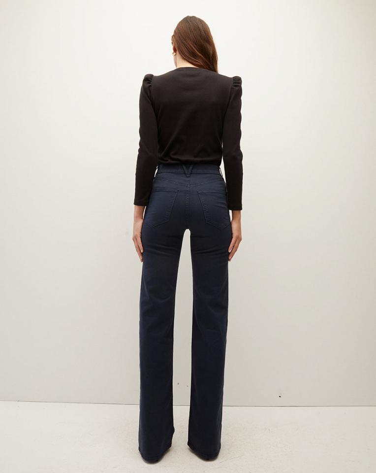 Meet the Crosbie, our elongating high-rise, wide-leg pant. Made in LA in premium stretch cotton from Japan and featuring front patch pockets and our signature V-shape belt loop at the back, this VB favorite is as versatile as it gets. We love pairing this with a simple T-shirt and platform heels for a casual-cool style.97% Cotton, 3% SpandexPremium Japanese denimMade in LAMachine wash coldStyle #J23084920827NY