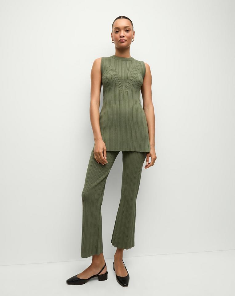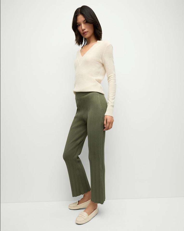 The ease of leggings in a sleek and streamlined pant. Expertly spun from a sporty stretch knit, the Massaro features a skinny-flare leg that’s fitted through the hips and thighs while the textured ribbing further elongates the legs. Pair with the coordinating Semma tank for an effortless look that’s both high impact and high comfort.69% Viscose, 17% Polyester, 13% Nylon, 1% ElastaneDry clean onlyStyle #2412KS1260445