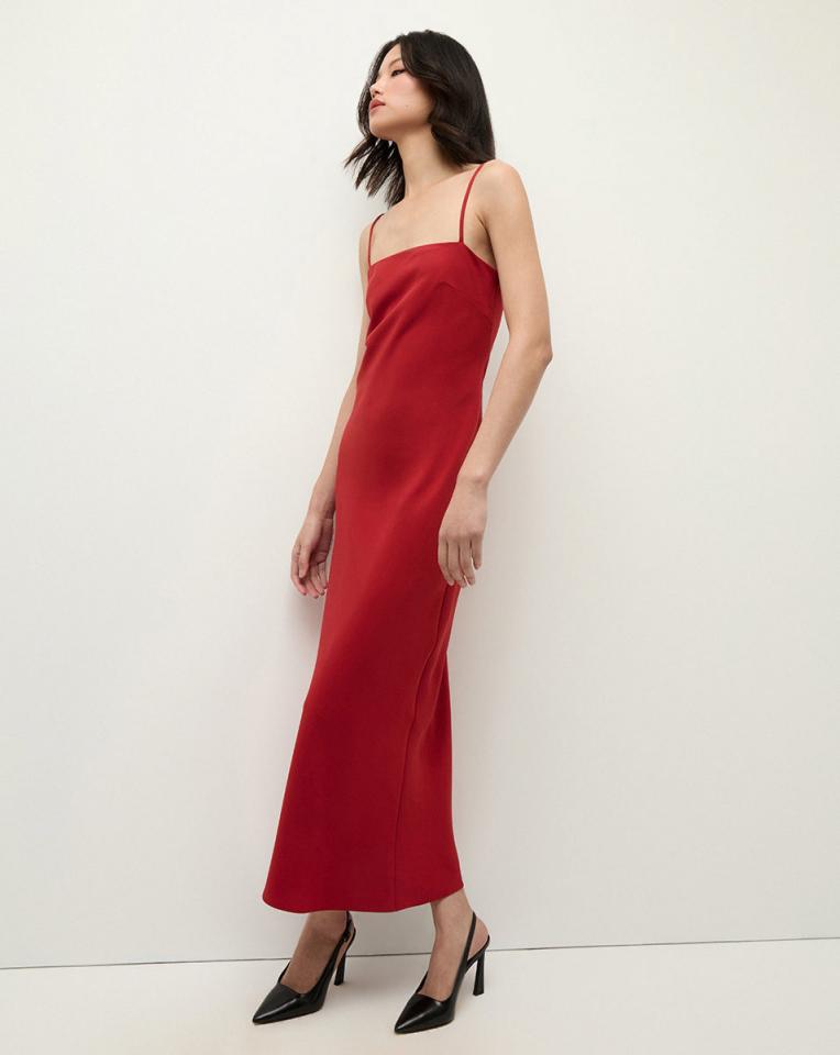 The Mavis is a versatile maxi slip dress featuring a square neckline and a body-skimming fit. All clean lines and a sleek, streamlined silhouette, this crimson red dress is perfect for date night or cocktail hour.65% Triacetate, 35% PolyesterLining: 100% PolyesterMade in USADry clean onlyStyle #2410CP2121193