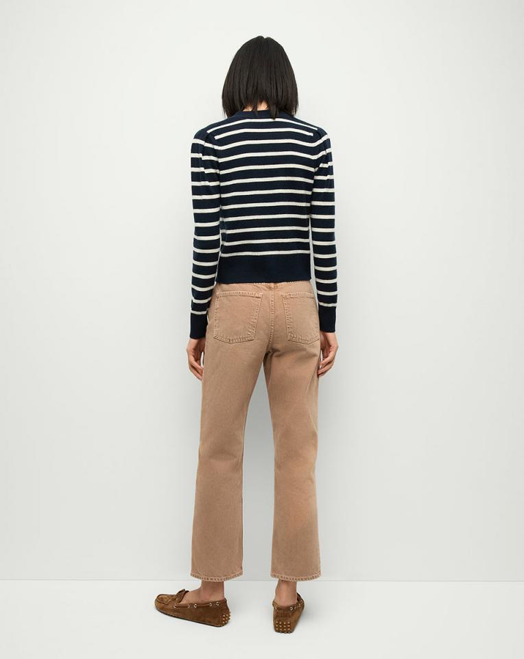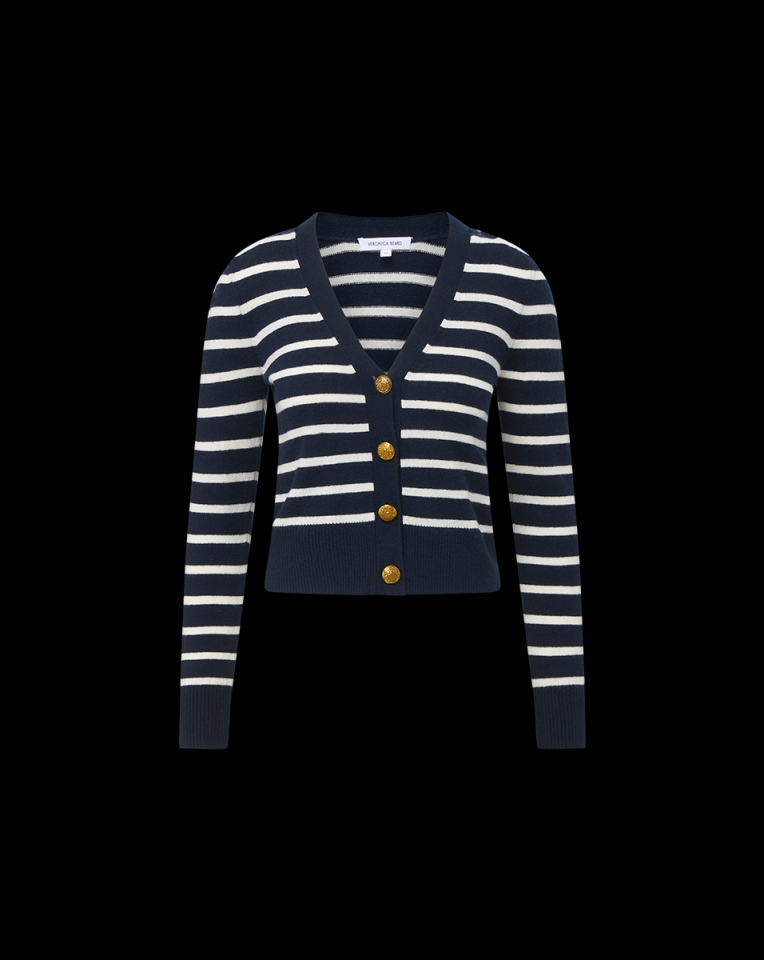 A VB favorite, now updated in nautical stripes. A luxurious layering piece, the Solene is made from 100% pure cashmere and finished with bronze crest buttons. Keep one on the back of your office chair—the classic works with any look.100% CashmereDry clean onlyStyle #2411KA1290254